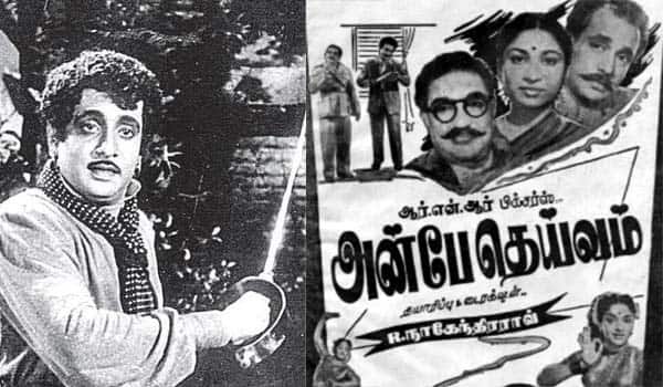 அவர் வில்லனாக நடித்த ஒரே படம் 'அன்பே தெய்வம்'. இந்தப் படத்தை ஆர்.நாகேந்திர ராவ் இயக்கி அவரே நாயகனாகவும் நடித்தார். அவரது மகன் ஆர்.என். ஜெயகோபால் கதை திரைக்கதை எழுதியிருந்தார். மற்றொரு மகனான ஆர்.என்.கே. பிரசாத், ஒளிப்பதிவு செய்து இருந்தார் இந்த படத்தின் ஒளிப்பதிவு அப்போது பரபரப்பாக பேசப்பட்டது.